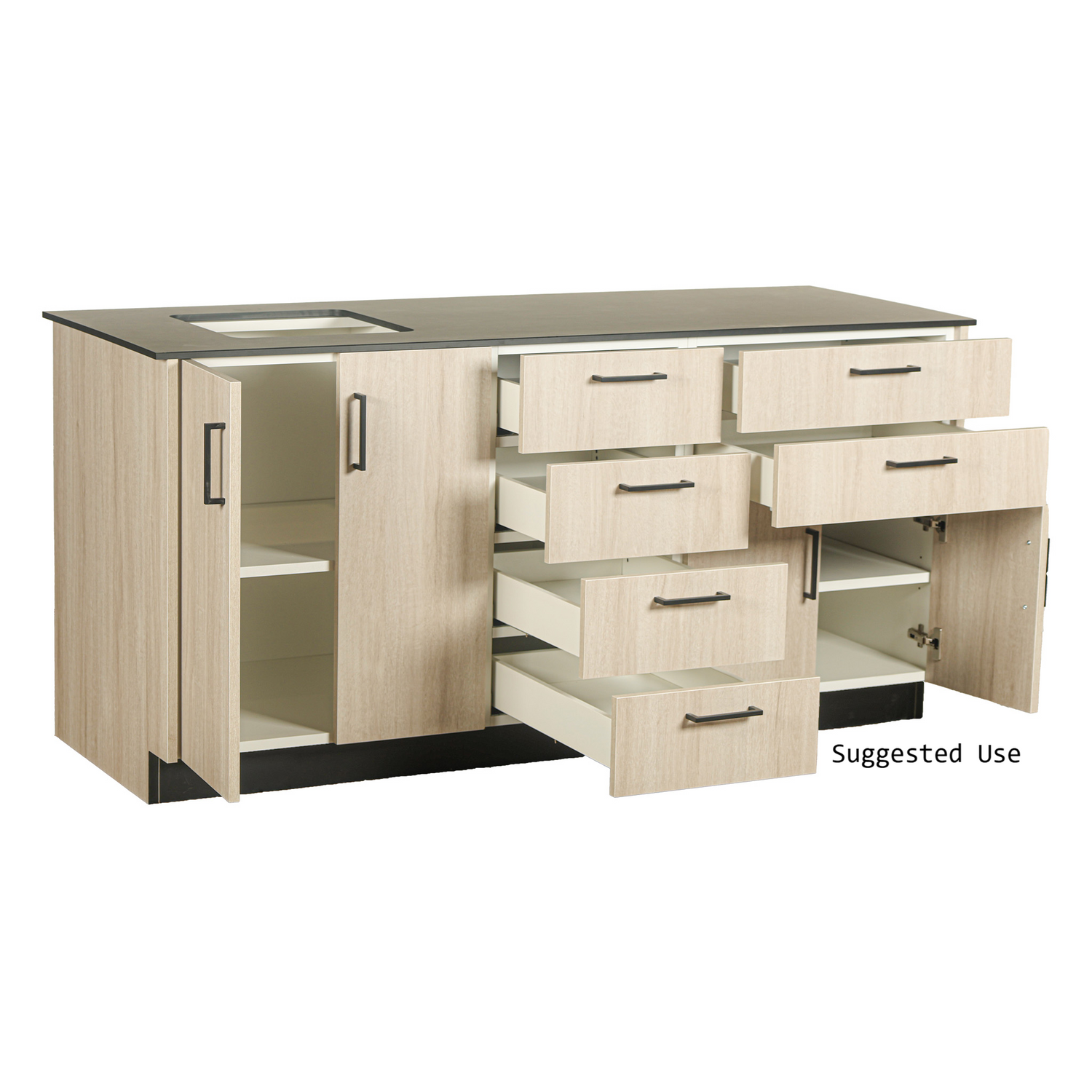 Single or multiple drawers and cabinet doors... our ADA stock cabinetry line allows you to create your own unique space. Fully assembled and ready to install. Optional matching toe kicks and end panels complete the look.